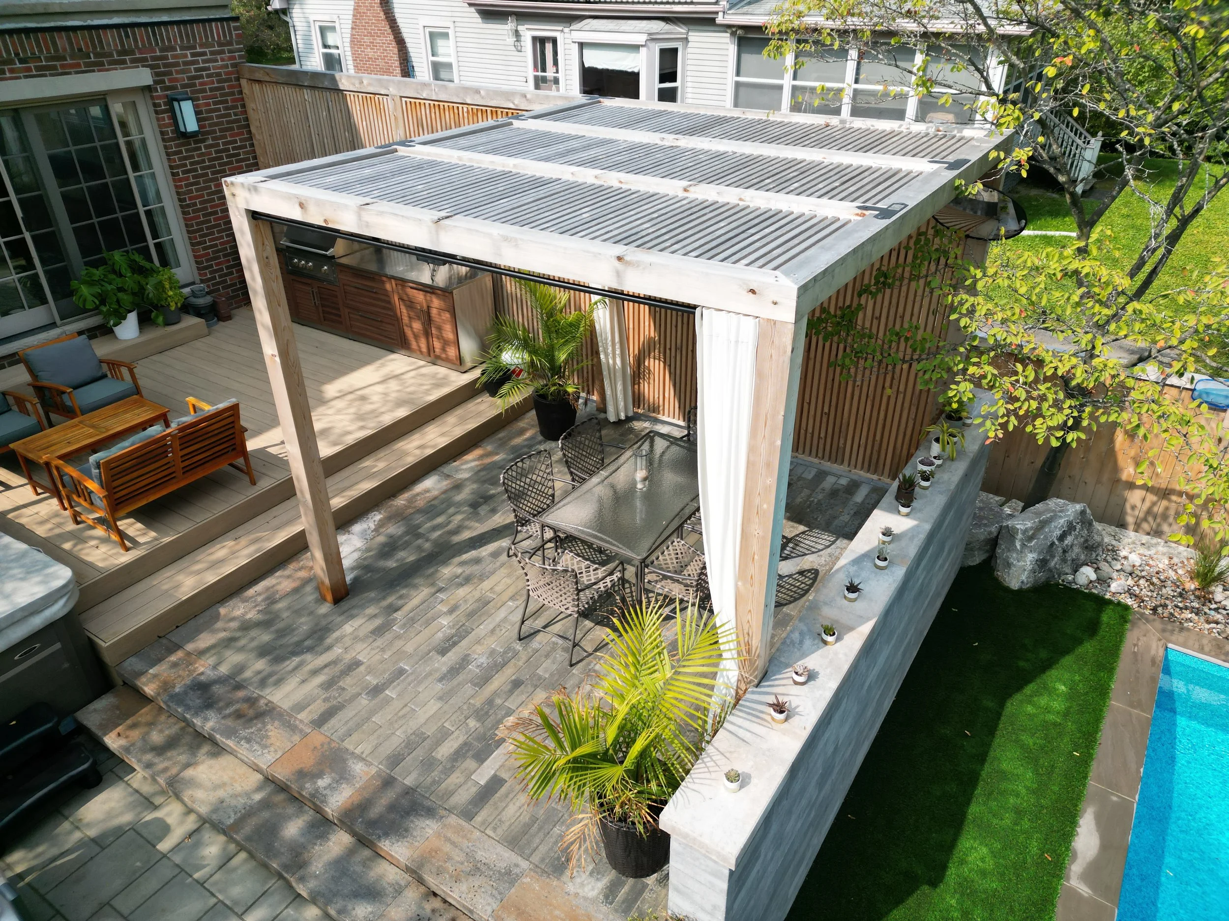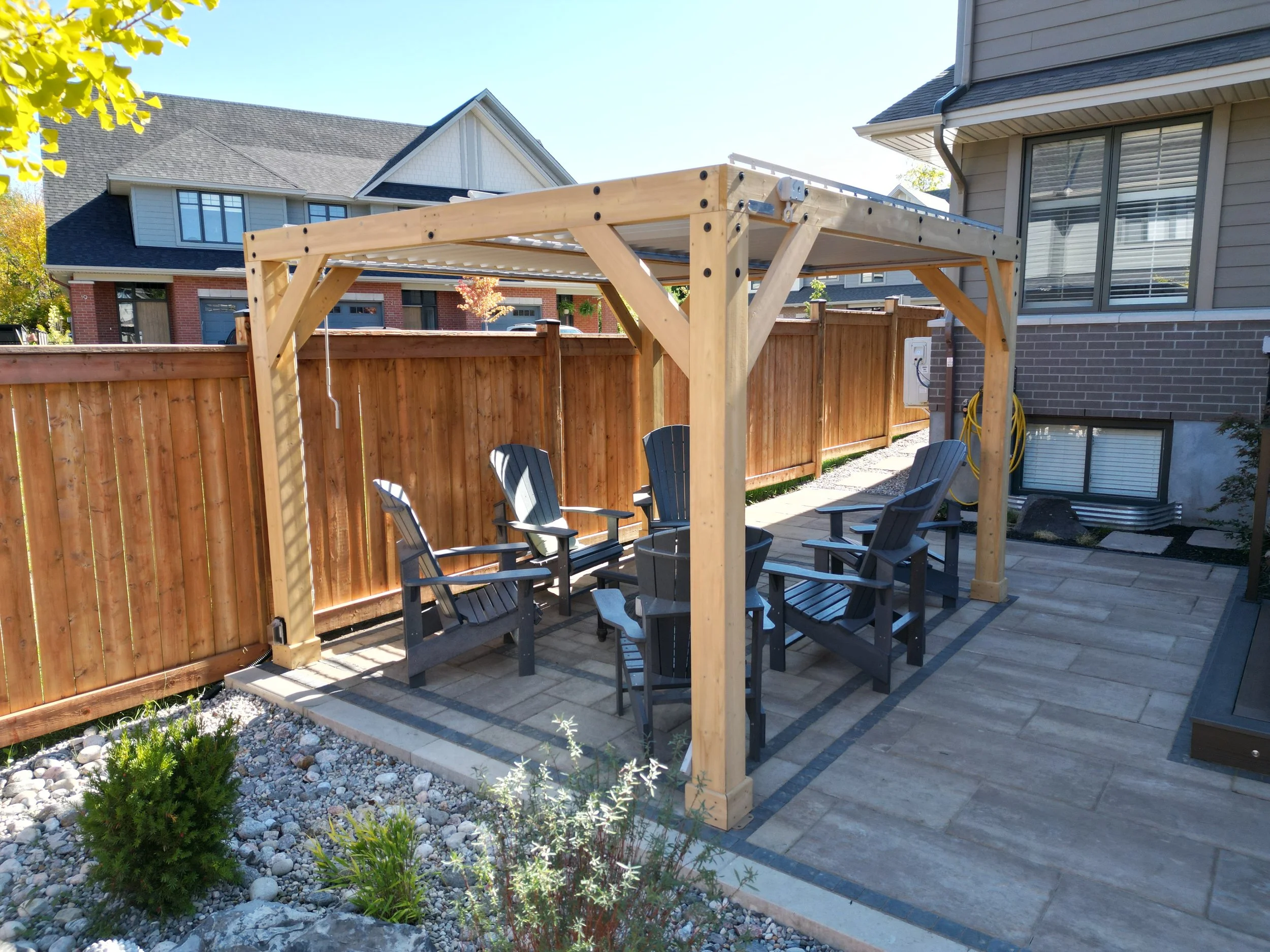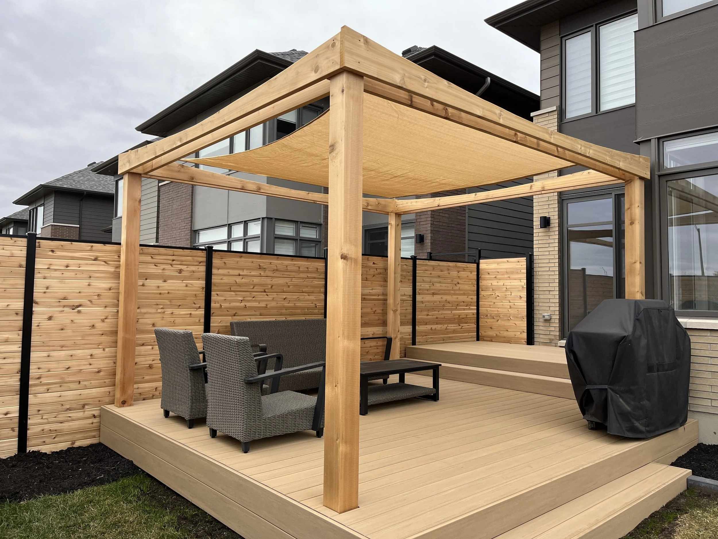 Cedar shade sail pergola
