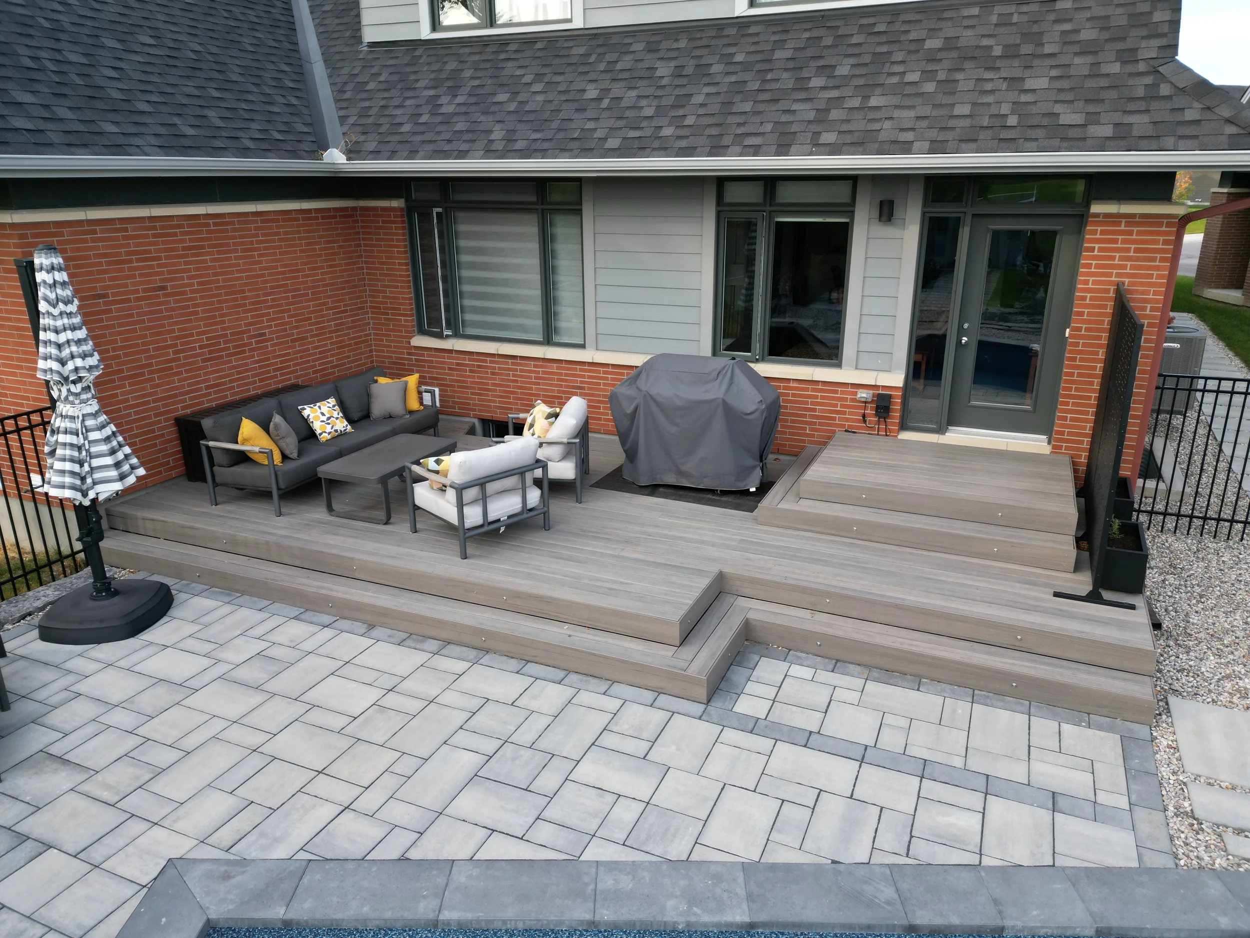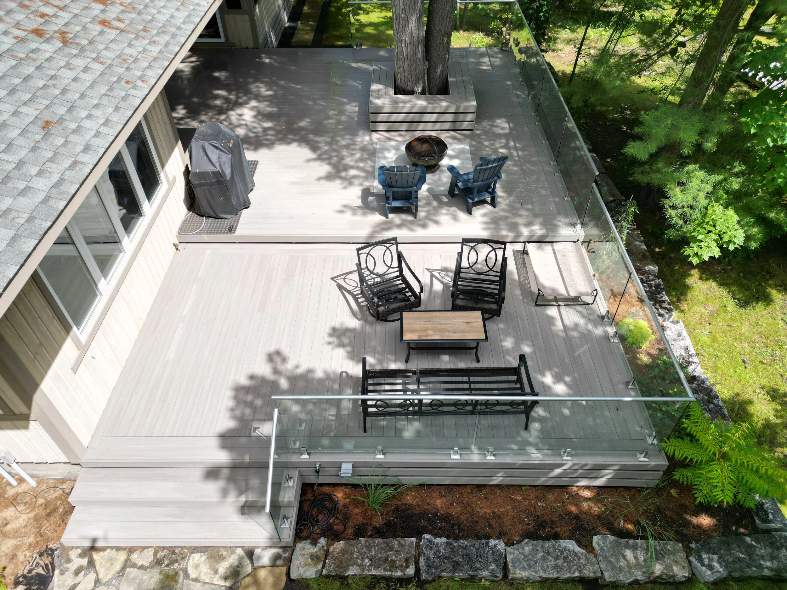 Two tone composite decking with storage and lighting