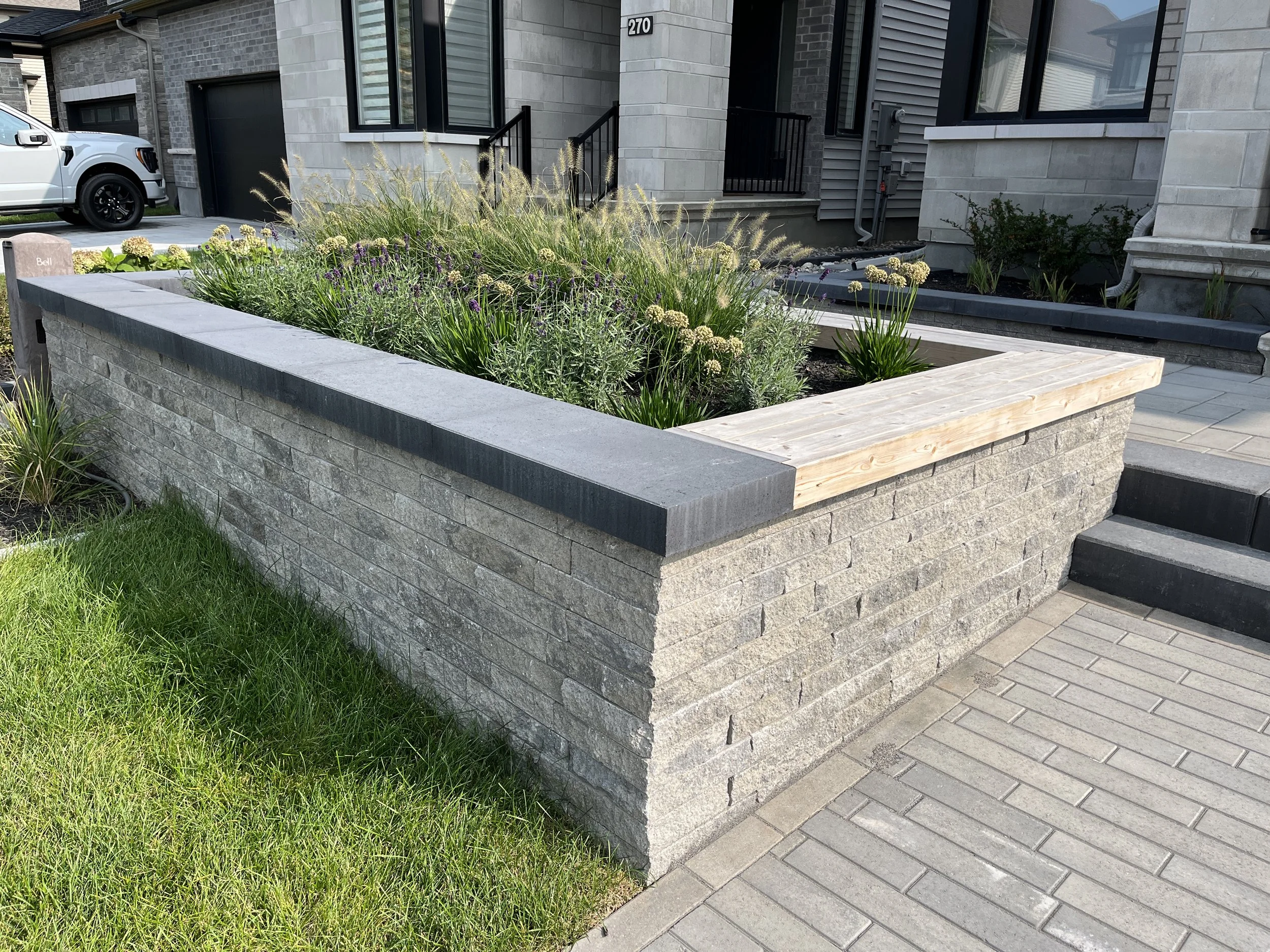 Raised garden wall with bench seating