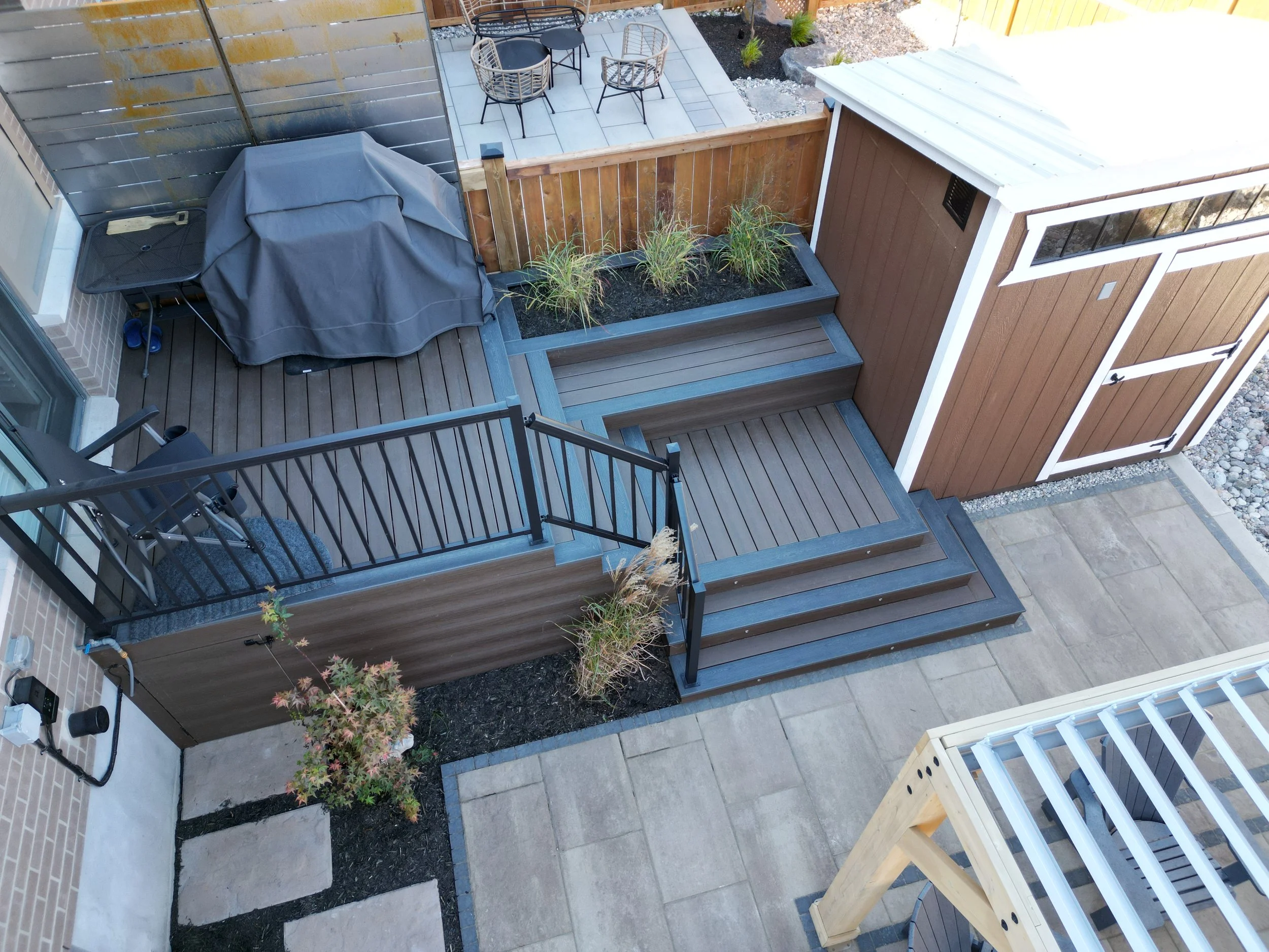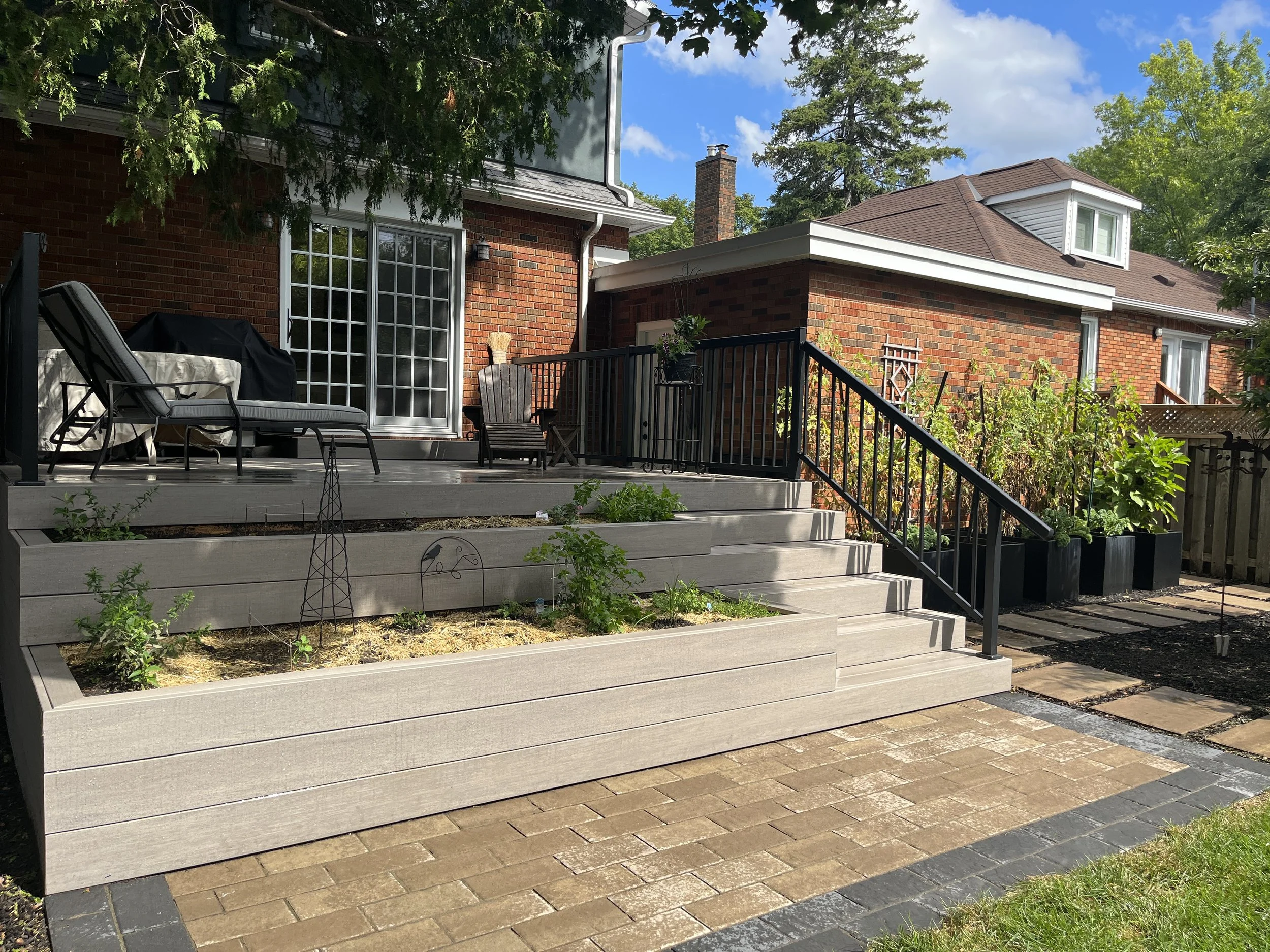 Tiered cedar deck with build in plantes and storage
