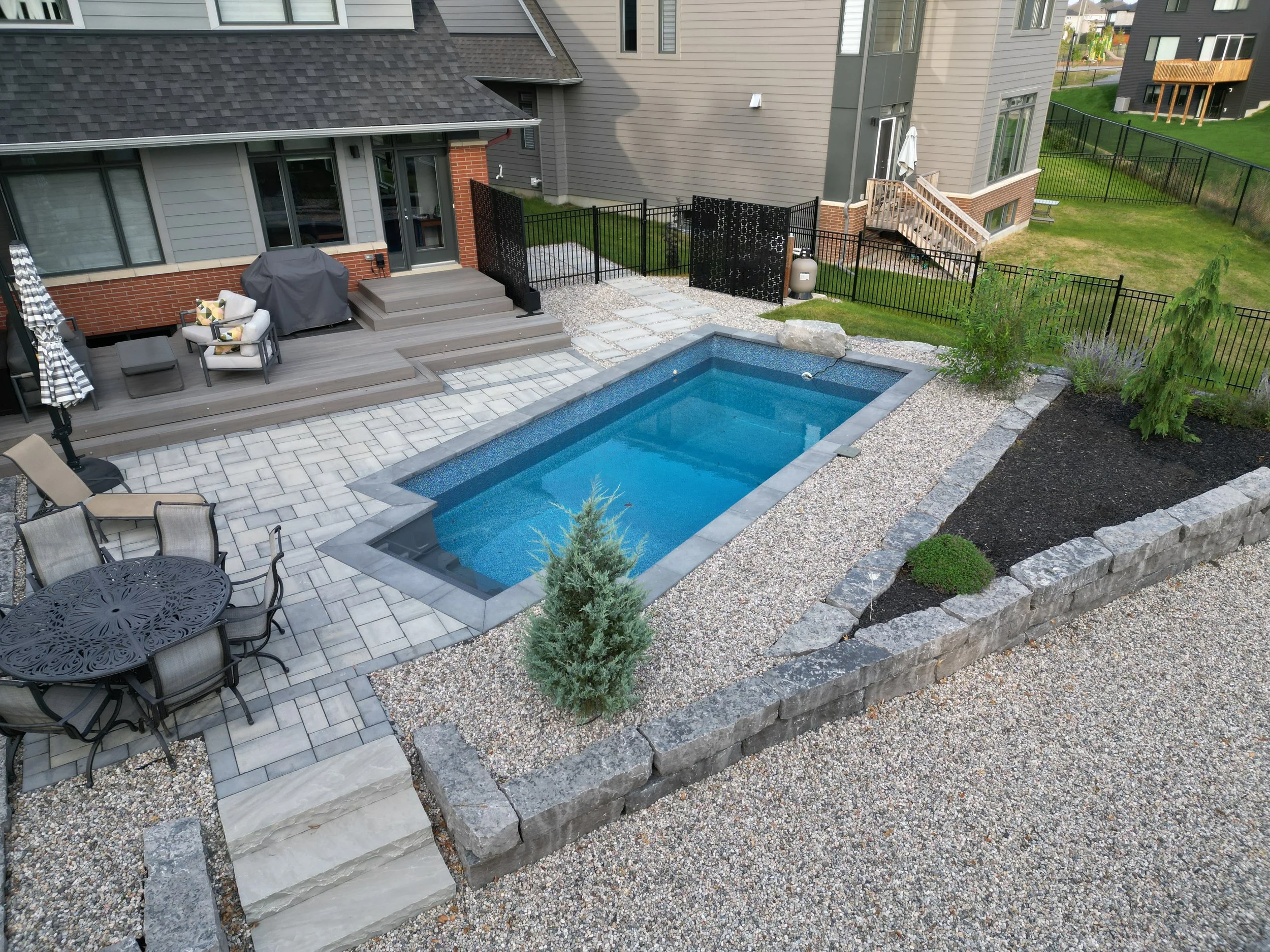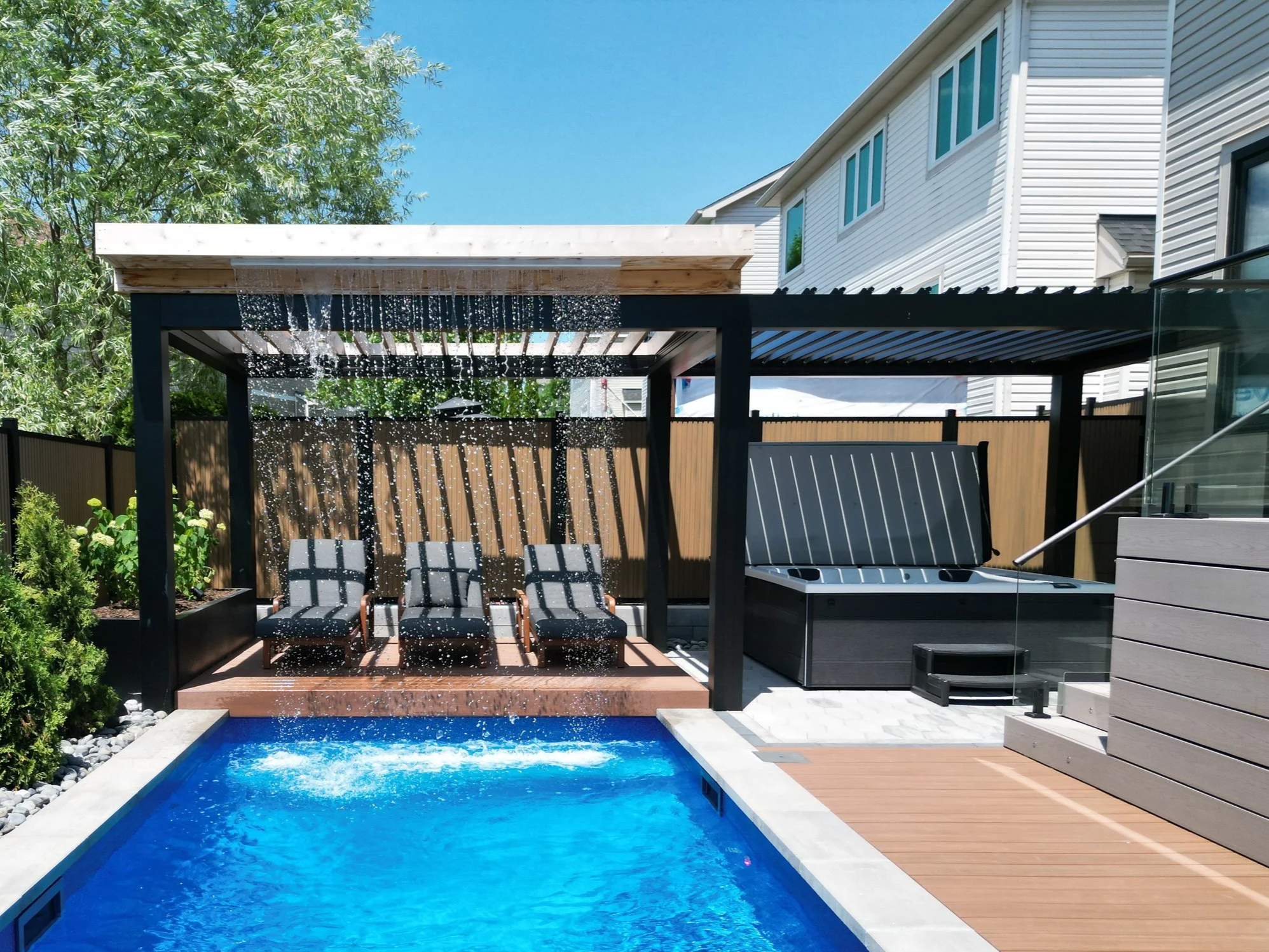 Rectangular pool with water feature