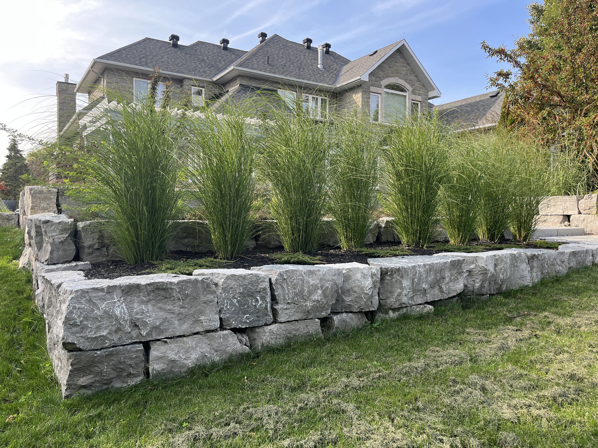 Armor stone retaining wall with gardens